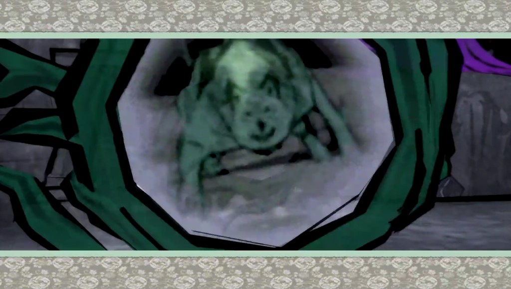 Le monde du théâtre occupe une place dans l’intrigue et possède une signification. Chibiterasu et Kagu [images 7 et 8] doivent en effet au cours de leurs aventures dans la Cité de Seian triompher d’un boss, Renjishi, immense poupée mécanique servant pour des représentations théâtrales, le lieu de la bataille n’étant autre que la scène d’un théâtre où les dispositifs scéniques ont leur importance, notamment dans la mise en défaite du boss. Cette poupée mécanique est contrôlée par deux personnages : c’est alors la lutte entre ceux ayant recourt au mécanisme pour vaincre et celui qui utilise les éléments de la nature (Chibiterasu peut utiliser le feu contre son adversaire artificiel), une lutte donc entre l’artifice et la nature. Voir le jeune loup fils d’Amaterasu combattre sur une scène théâtrale est également symbolique dans un autre sens : la créature au doux pelage blanc sur lequel se dessinent des motifs rouges ne sont pas sans rappeler le maquillage blanc porté par les acteurs de théâtre portant des kimonos aux motifs colorés et sophistiqués.