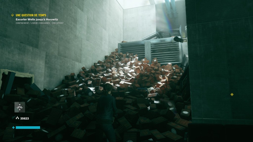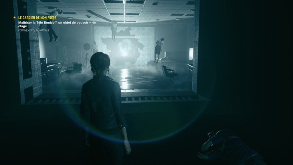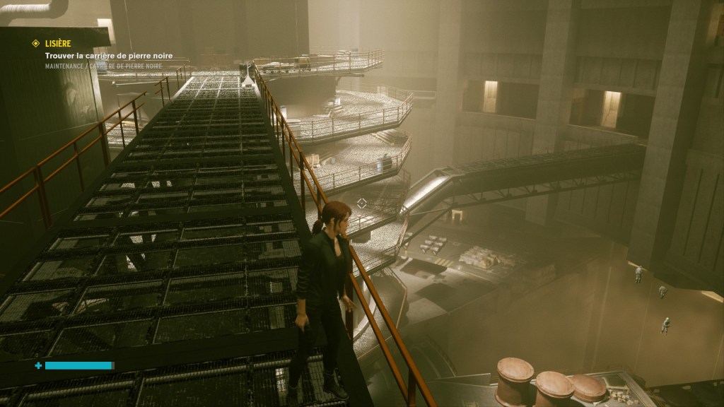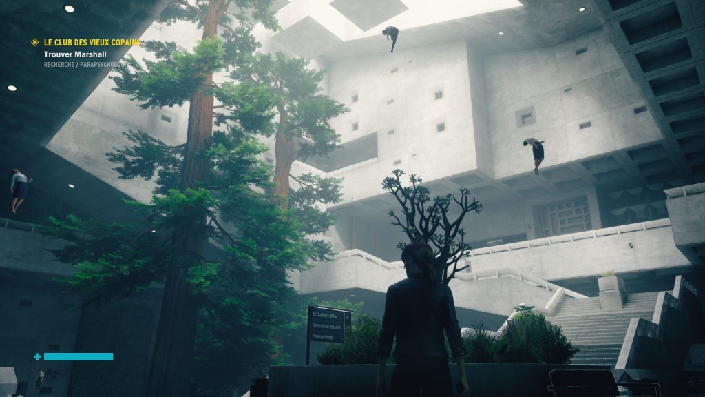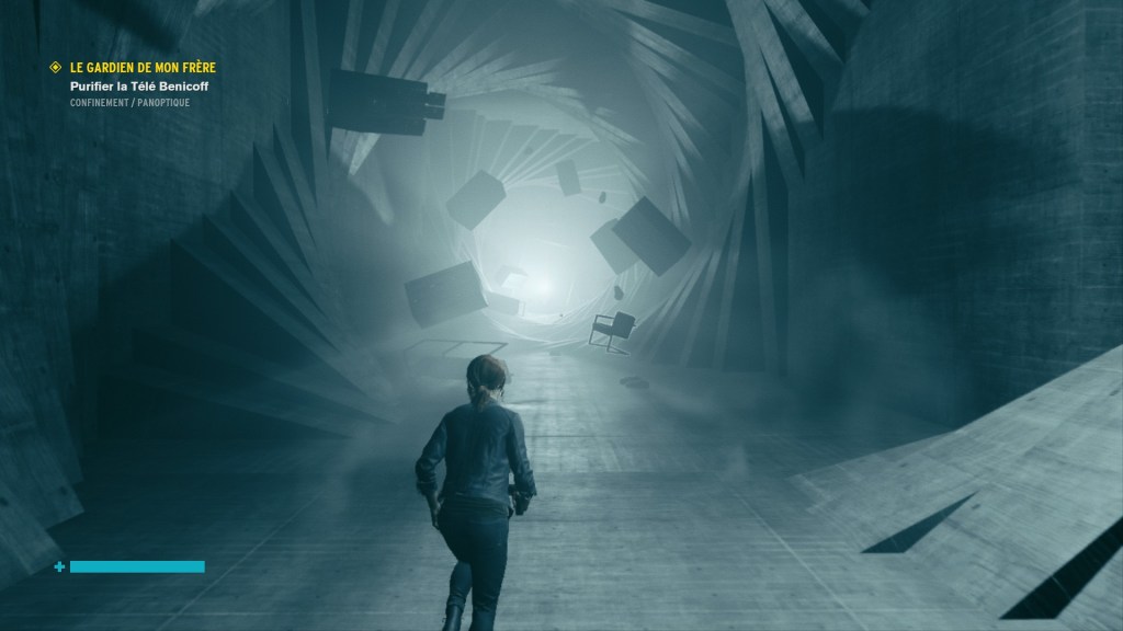 Au début, on n’y comprend pas grand-chose, c’est bien vrai mais le monologue de la cinématique d’introduction pose les bases d’un scénario assez solide. Pour ne pas trop en révéler, on dira juste que l’on incarne Jesse Faden, une jeune femme -accompagnée par une entité appelée Polaris- qui cherche son frère depuis un mystérieux accident quand ils étaient enfants. Dès le début du jeu, ce qui frappe, c’est l’architecture changeante des lieux que l’on explore. Le summum est atteint avec le labyrinthe du cendrier dans lequel le haut devient le bas, on ne sait pas s’il s’agit d’un long couloir ou d’un gouffre sans fin.
