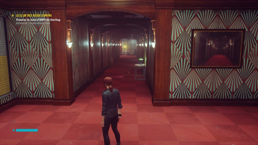 L’architecture joue un rôle primordial dans dans le jeu. Les espaces sont souvent tordus, démultipliés, amplifiés. Il est d’ailleurs très intéressant qu’au moment où l’on pense connaitre les lieux, le joueur obtienne le don de lévitation ce qui permet de repenser entièrement l’espace de jeu et de combat contre les agents du Hiss. Les peinture y joue un rôle important. Elle représente souvent les endroits où l’on est (voir la première image) ou montre des portrait de Jesse ce qui a de quoi étonner. Les mises en abime font intégralement partie du jeu et y jouent un rôle capital.