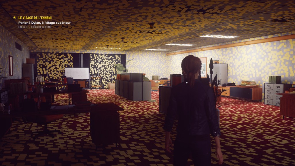 Remedy a su rendre tous les espaces visitables uniques et originaux, mêmes de simples bureaux peuvent être transformés par l’ajout d’une grande quantité de post-it postés partout, mettant le joueur mal à l’aise. Voici une petite compilation des espaces qui m’ont totalement laissé sans mot :