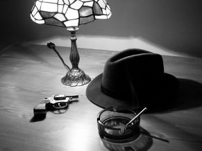 Le clair-obscur est allègrement utilisé dans les jeux qui relèvent du « roman noir ». Derrière cette appellation se cachent d’abord des romans papier qui connaissent un véritable engouement dans l’après-guerre après un début fébrile dans les années 1930. Ces romans ont en commun un goût prononcé pour le suspense, les énigmes, les tueurs en série etc… et se rapprochent du genre « hard boiled« . Dans ces romans à clé, le sang coule à flot, les femmes sont des proies faciles et le détective-policier solitaire a la gâchette et la fumette faciles.