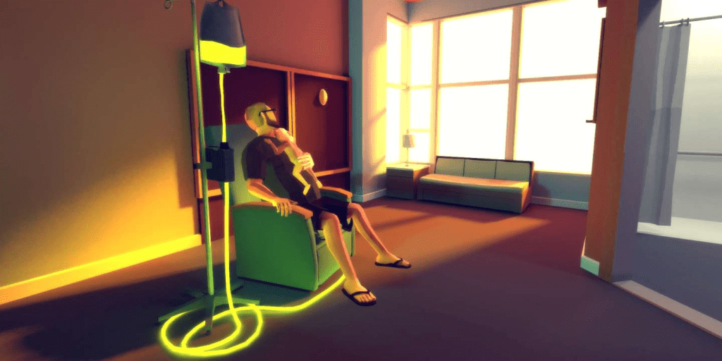 Dans un ordre tout à fait différent, mais tout autant métaphorique et profond, se trouve That Dragon, cancer qui place le joueur dans la peau d’un couple dont l’enfant est atteint d’un cancer incurable. Ce jeu est plus qu’inspiré par un couple existant (le père est l’un des développeurs du jeu) qui doit faire face à l’espoir, la déception, la mort et le deuil de leur enfant. Le jeu se compose de plusieurs niveaux, sans réel challenge, dans lesquels on déambule en entendant le personnage joué réfléchir et philosopher sur la situation. Chaque niveau oscille au sein d’une large palette d’émotions et de souvenirs: des lettres pour l’enfant, des messages sur répondeur de la femme ou de l’homme, des moments passés à jouer avec Joël (l’enfant). Par exemple, deux passages qui m’ont durablement marqué sont situés à l’hôpital. Dans le premier, on joue avec l’enfant malade dans un chariot que l’on fait déambuler dans les couloirs de l’hôpital à la manière d’une mini voiture. Le second arrive peu après: on quitte la chambre de Joël et on se retrouve face à une multitude de guirlandes avec des messages d’encouragement et des citations bibliques. Bien que l’on connaisse la fin avant même d’avoir commencé le deuxième niveau, on se prend d’affection pour le petit enfant et l’ensemble du jeu porte sur la relation tendue mais affectueuse que l’on entretient avec lui. On vit le deuil en même temps que les parents. Un jeu court mais intense.