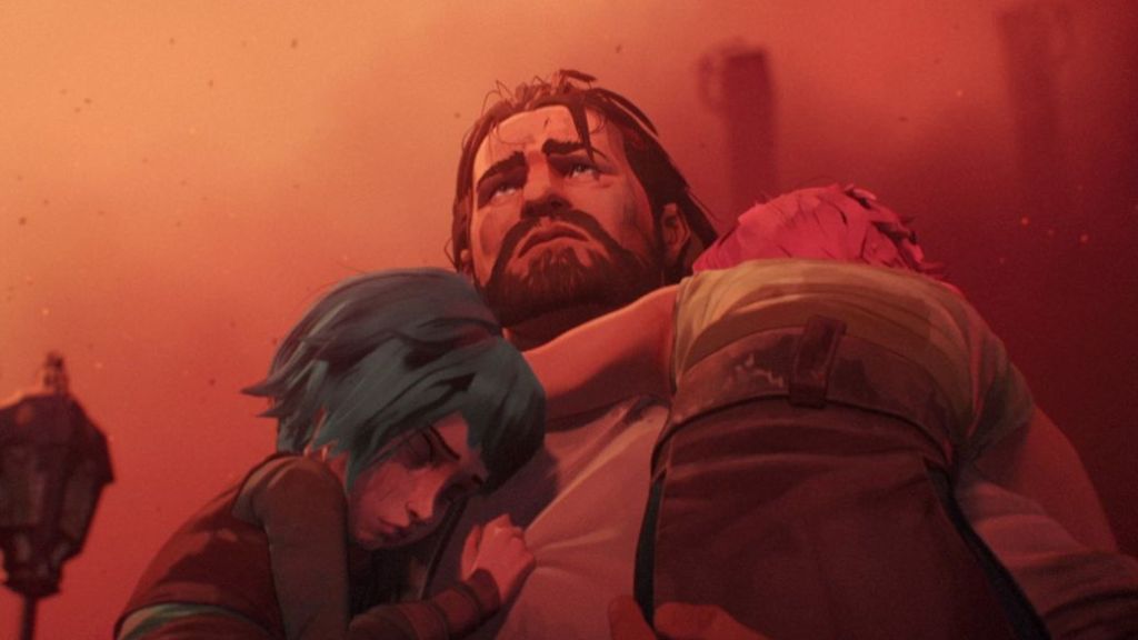 On pourrait résumer l’ensemble de la série par la quête d’une famille stable. Qu’il s’agisse de Jayce, issu d’un clan mineur, qui arrive à se hisser au sommet de Piltover et à s’attirer l’amour de Mel; de Mel, tiraillée entre ses valeurs et sa famille; de Powder et Vi qui se croisent à plusieurs moments sans arriver à vraiment se comprendre; de Viktor, tiré des bas-fonds et qui a réussi à devenir un brillant scientifique pour sauver la ville pauvre sous Piltover qu’il considère comme sa famille; de Caitlyn en perpétuel conflit avec sa mère, une influente conseillère pour qui les bonnes fréquentations de sa fille sont un sujet récurrent; d’Ekko, qui a formé un groupe de freedom fighters avec qui il a fondé une grande maison-arbre; de Silco qui se comporte comme un vrai père auprès de Powder au point de tout tenter pour lui sauver la vie; on assiste toujours au même type de recherche. Le même Silco, est d’abord présenté comme l’antagoniste principal, autrefois un proche de Vander qu’il considérait « comme un frère« , avant que ce dernier ne le trahisse. Quand on dénoue les fils des relations, on remarque que tous sont plus ou moins reliés par des liens familiaux. Ces familles multiples peuvent être comprises au sens le plus restreint (l’héritage sanguin), ou de manière abstraite (le groupe, le Concile…). On constate également que même les personnages secondaires peu développés comme Markus ont une famille. Ce dernier se laisse corrompre pour offrir un meilleur avenir à sa famille avant que sa fille ne serve d’otage à Silco. Au moment de sa mort, ses derniers mots iront à sa fille, dans une phrase qui demeurera inachevée.