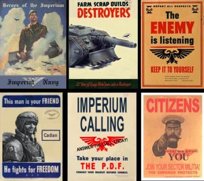 Partout où l’on va, la propagande prolifère : les injonctions à la foi, au sacrifice et à l’exemplarité se multiplient. Elles peuvent prendre la forme d’affiches, de prêcheurs, de statues, de monuments voire même de gigantesques bâtiments à la gloire de l’Imperium. Le culte de la personnalité est omniprésent et beaucoup de ces aspects entretiennent des liens forts avec la propagande que l’on trouve dans Fable III ( Microsoft Games Studio; 2010). A l’idée d’une perfection morale se joint la représentation d’une perfection physique dans les statues, les posters etc… Ces représentations, qui sont monnaie courante au sein de l’Imperium, n’ont rien à envier aux monuments nazis et communistes qui se faisaient face lors de l’exposition universelle de 1937. Le totalitarisme théocratique est renforcé par deux éléments. Le premier est le culte des icônes et des reliques, comme catalyseurs de la foi et de la subordination envers les grands héros du passé dont il faut à tout prix imiter le modèle mais aussi sauvegarder l’héritage. Le deuxième réside dans l’idée que le véritable maître de l’Impérium, l’Empereur Dieu, bien que physiquement mort, projette son esprit partout dans l’univers. Chaque acte, chaque pensée doit faire face au jugement de fer du maître spirituel de l’Humanité. Ce n’est pas sans rappeler l’omnipotence d’un certain Big Brother dont les yeux et les oreilles trainent partout. Et bien sûr, tout cela se traduit dans les formes d’art glorifiantes que l’on retrouve dans l’univers de fiction.