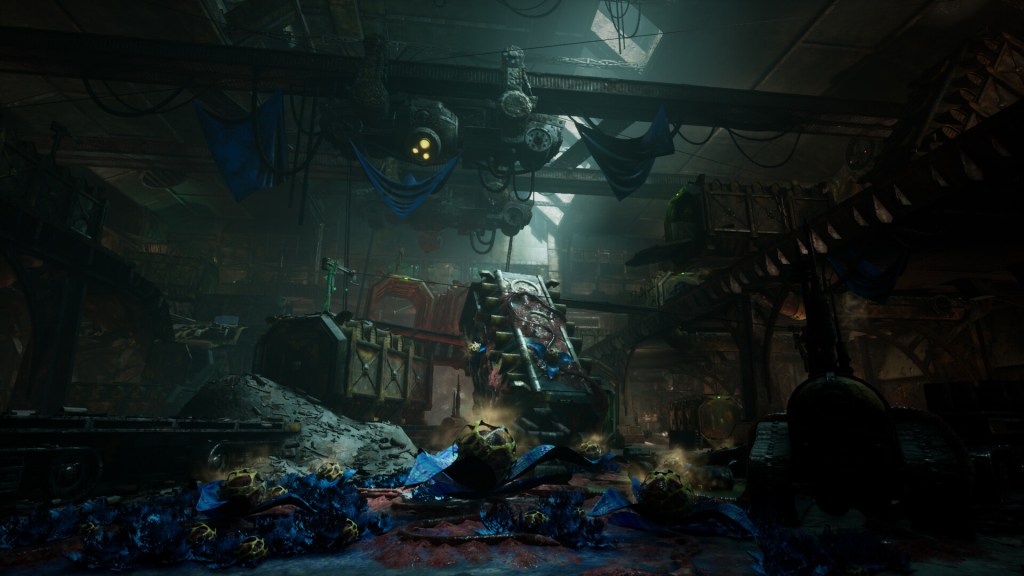 Pour y voir plus clair, il faut prendre un peu de hauteur et comprendre comment se manifeste le chaos et comment il incarne une intéressante contrepartie à l’Imperium. Prenons le cas de Nurgle (héhé). Comme le présente le jeu Warhammer 40 000 : Darktide ( Fatshark; 2022), la corruption par Nurgle prend la forme d’une libération : la vie morne des habitants délaissés des bas fonds de la ville-ruche est soudainement embellie par l’arrivée d’une flore exubérante là où rien ne pousse en dehors des serres. Comme l’explique dans sa vidéo (ici) le cinéaste Librarium : « partout où ils [les soldats du 6ème régiment Moebian déployé dans la ville-ruche Tertium] avancent, la vie s’épanouit dans leur sillage, dans une abondance et une diversité jamais vues auparavant sur la planète. On peut aussi entendre des rires au milieu de tous les sons effervescents de la régénération. Si le 6ème de Moebian connaît le succès, s’il peut convaincre la ruche du pouvoir de l’admonition, alors Tertium pourrait renaitre. Il se dressera au-dessus d’Atoma Prime, non pas comme un tas d’adamantium ou de béton de roche en ruine mais comme une oasis vivante et vibrante. Un incubateur naturel pour chaque graine fertile et chaque rêve merveilleux. Un jardin digne du grand-père. » Si l’Imperium propose une existence de misère au nom de sa survie, le chaos de Nurgle se présente comme une vie de joie et d’extase. Un tel épanouissement ne saurait être toléré par l’ascétique Impérium qui envoie l’Inquisition mater le 6ème, c’est le début du jeu. Cela pose la question maintes fois posée du lien de l’individu à la société : l’individu existe-t-il pour faire vivre la société ou bien la société existe-t-elle pour faciliter la vie de l’individu ? Loin d’une leçon de philosophie à la façon d’un cours magistral qui pourrait être déplacée dans un tel cadre, l’univers Warhammer 40K laisse les réponses libres à chacun des joueurs.