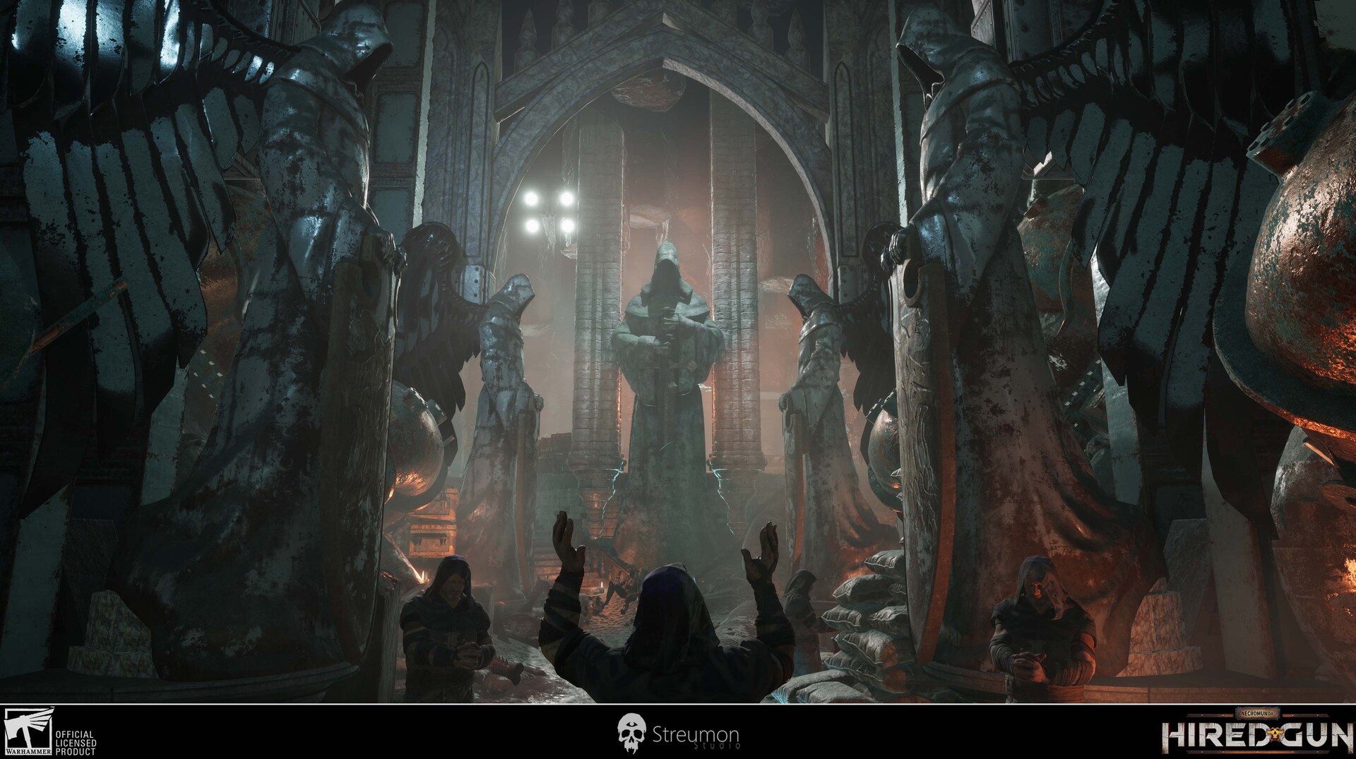En matière de grandeur déchue, il est difficile d’ignorer le romantisme anglais qui, par de nombreux aspects a inspiré la charte graphique et conceptuelle de l’univers de Games Workshop. Tout d’abord, à l’instar d’une créature de Frankenstein, science et religion se mélangent dans une industrie mystique contrôlée par un ordre de prêtres en manteau rouge. On peut également parler de l’architecture néo-gothique étouffante du monde fictif où se dressent châteaux, cathédrales, forges etc… même les vaisseaux spatiaux sont loin de l’aveuglant blanc aseptisé dont on a l’habitude : ils tiennent du château, du navire de guerre à éperon mais aussi de l’abbaye avec ses scriptoriums jalonnés de cellules monastiques. Mais, s’il est une œuvre à la fois emblématique et du romantisme anglais et de Warhammer 40k, c’est bien le poème Ozymandias (1817) écrit par Percy Bysshe Shelley que l’on peut résumer ainsi : tout, même la plus grande gloire et les plus grandes œuvres sont vouées à disparaitre. Le 41ème millénaire donne à voir une humanité au bord de l’extinction vivant à l’ombre de sa grandeur passée, les ruines, les statues brisées rappellent tour à tour la chute de Rome vue par les romantiques et la vision de Shelley. Pour rester dans le domaine du romantisme anglais, on peut par ailleurs citer le poème inachevé de John Keats, un poète contemporain de Shelley, Hypérion (1818) qui traite de la chute des Titans face aux olympiens et de leur chant du cygne. Si les références au néo-gothique se multiplient, on trouve aussi d’autres inspirations majeures, elles aussi choisies pour leur rapport à l’éternité : les bâtiments de Prospero sont en grande partie des pyramides, Ultramar est esthétiquement semblable à la Rome antique quand l’ensemble de l’organisation politico-militaire et une bonne partie de l’iconographie font écho au Reich millénaire. Le monde de Warhammer 40k est très paradoxal : c’est un univers futuriste, mais pas comme ceux que l’on a l’habitude de voir; il suinte, rouille, tombe en ruine et rien ne semble pouvoir arrêter sa décrépitude. Dans le jeu Necromunda : Hired gun, bon nombre de décors sont des ruines; on arpente les vestiges d’une fonderie, on est appelé à défendre une ancienne citadelle et on s’enfonce dans des entrailles oubliées grouillantes d’aliens. Ce qui peut caractériser la ruine, la différencier de simples restes, est que celle-ci a certes tout perdu (sa beauté, sa fonction, sa grandeur, ses habitants…) mais elle a aussi gagné ! Une ruine est habitée par la nature qui a repris ses droits, de nouveaux locataires, ponctuels ou permanents, qui lui donnent de nouveaux rôles. Et c’est dans cette ré-habitation que l’univers Warhammer 40k excelle car les ruines sont le théâtre d’opérations militaires, servent de lieux de vie aux parias, des explorateurs en inspectent chaque recoin pour y trouver la trace d’une hypothétique technologie perdue. Si Warhammer 40K se passe bien dans le futur, ce futur et le passé ne cessent de coexister quand ils n’entrent pas dans de violentes collisions.