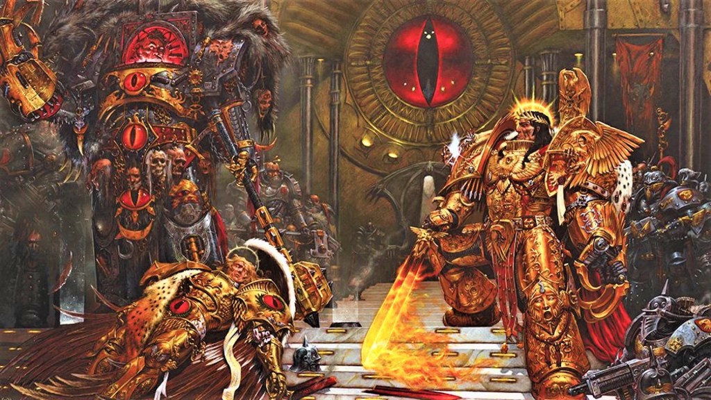 Il y a quelques temps, je me suis plongé dans l’univers de Warhammer 40k à travers les figurines, les jeux-vidéo, les animations faites par des fans et les séries qui en ont été tirées. La moindre des choses que l’on puisse dire, c’est que l’univers est dense, très dense. En fait, tellement dense que c’en est parfois décourageant d’arpenter sans fin le Wiki tant chaque page mène à des dizaines d’autres. La richesse de cet univers tient, bien sûr, au fait du nombre d’auteurs et de créateurs chargés de le développer, du temps écoulé depuis que les premières ébauches ont été jetées, mais aussi de la participation assidue des fans qui dessinent et peignent les grands moments de l’histoire aussi bien que des tranches de vie, assemblent les figurines, parfois en en combinant certaines pour en créer de nouvelles, inventent de nouveaux scénarios pour chaque partie etc… Pourtant, tout cet univers, à force de recherches, semblent s’axer autour d’une grande quête, autant sanctifiée que moquée par les protagonistes et antagonistes de cette création immense, mais aussi par les joueurs qui prennent part aux aspirations de leurs personnages mais savent qu’il s’agit d’une quête vaine menant au totalitarisme théologique. Plongeons la tête dans le cambouis et explorons ce qui est sûrement le plus vaste univers étendu crée jusqu’à présent.